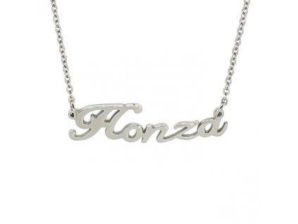 Řetízek se jménem z chirurgické oceli v délce 41 cm plus přívěsek ( v závislosti na počtu písmen).